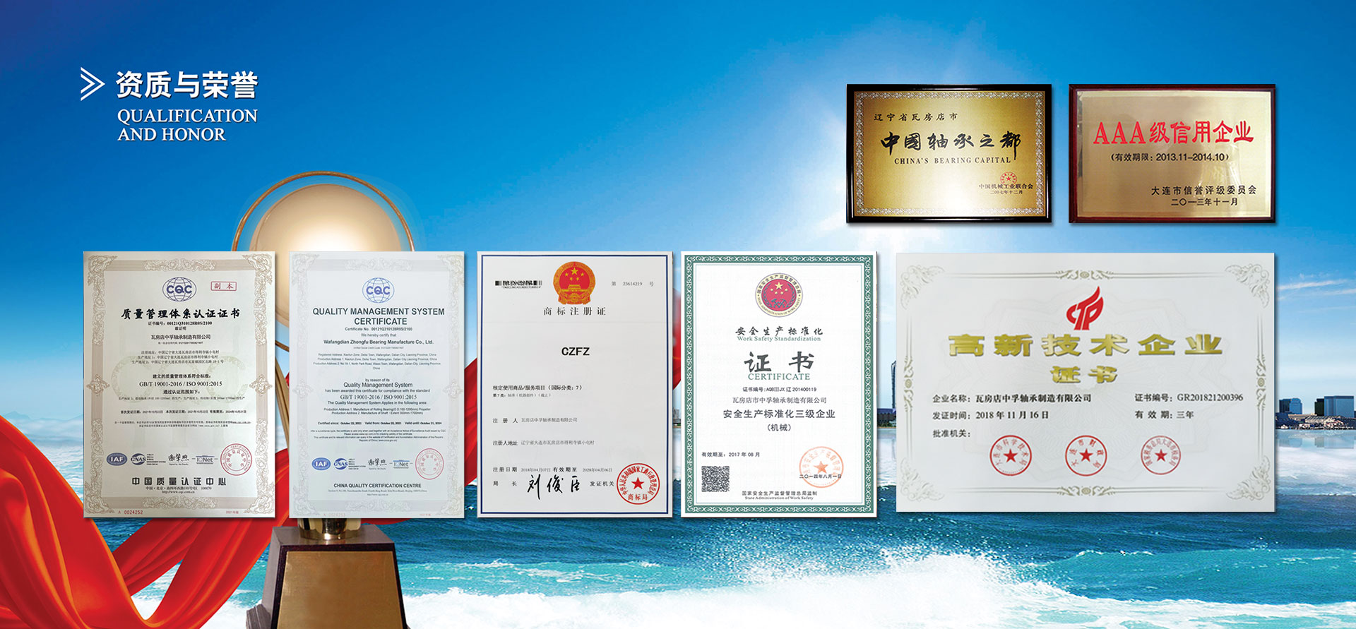 瓦房店中孚軸承制造有限公司專業(yè)生產(chǎn)礦用汽車軸承和配件,擁有獨(dú)立礦用汽車軸承設(shè)計(jì)和產(chǎn)品研制部門,具備開(kāi)發(fā)礦用汽車軸承的能力,保證軸承的使用壽命和高穩(wěn)定性,并建立了完整的質(zhì)量體系,已通過(guò)ISO9001:2015質(zhì)量管理體系認(rèn)證。